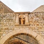 Au dessus de la porte notez la statuette du saint patron de Dubrovnik Saint Blaise (Vlaho en croate) portant la maquette de la ville.